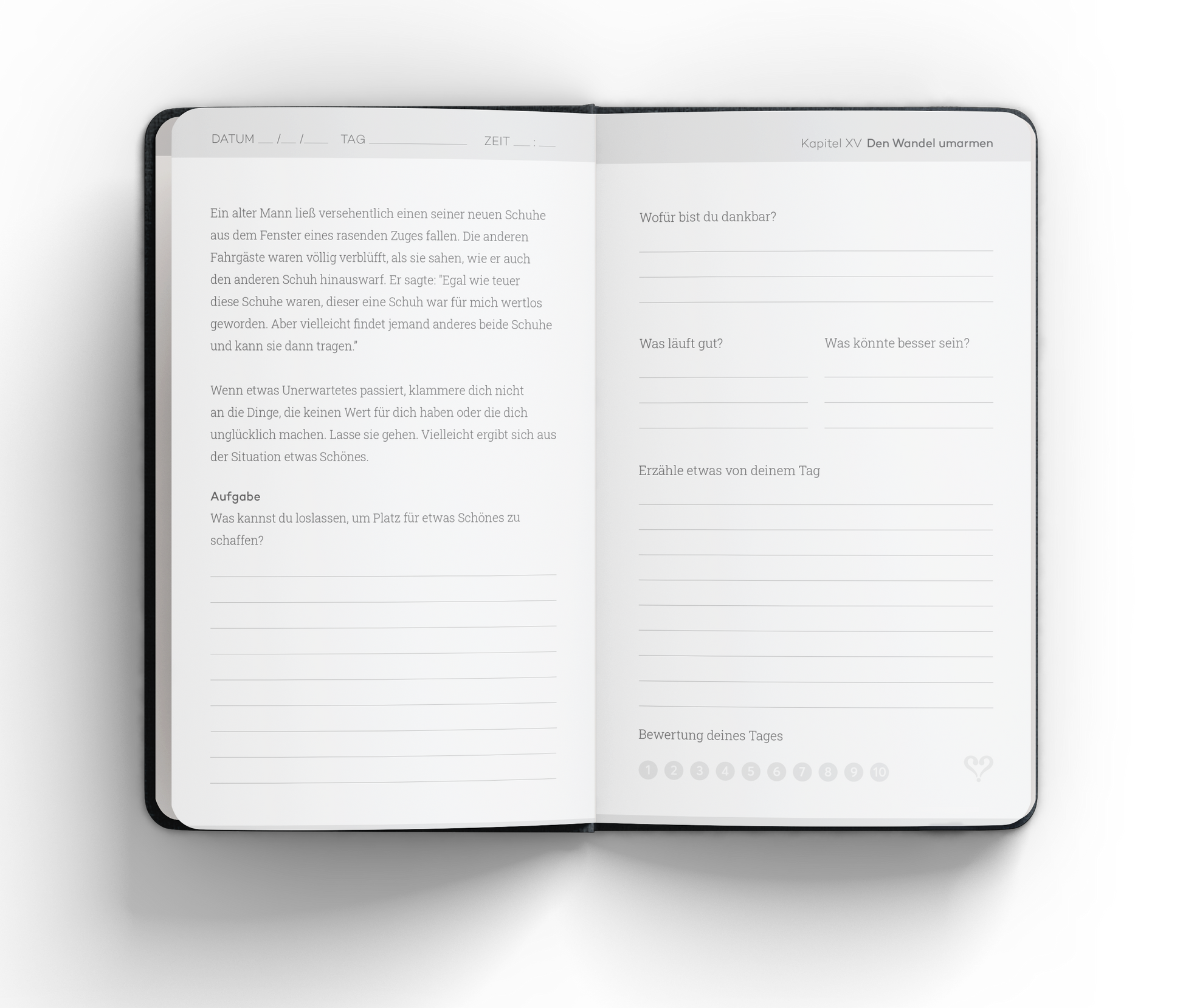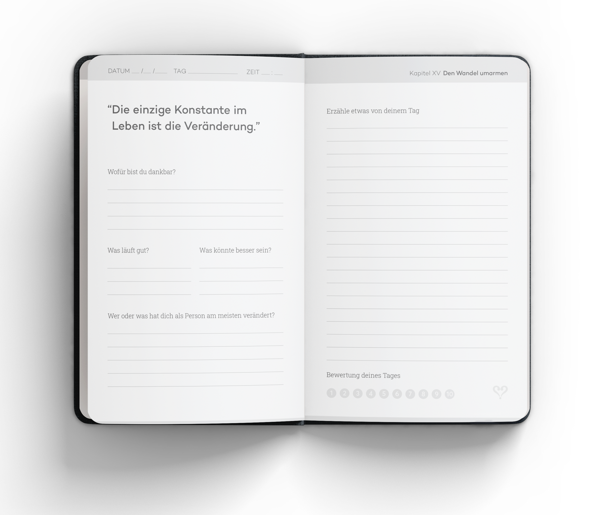 Chapters 2 baut auf dem erfolgreichen Selbstreflexions-Tagebuch Vertellis Chapters auf. Es fordert dich heraus, täglich das Beste aus dir und deinem Leben herauszuholen. Egal, ob du schon mit Chapters 1 gearbeitet hast oder direkt mit Chapters 2 starten möchtest – beide Journals stehen für sich und ergänzen sich perfekt.